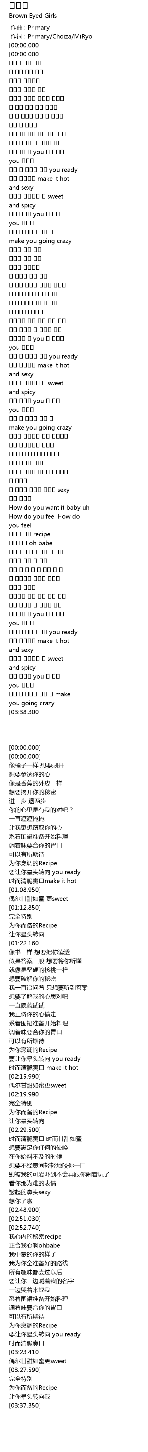 | [00:00.00] | 作词 : Primary/Choiza/MiRyo |