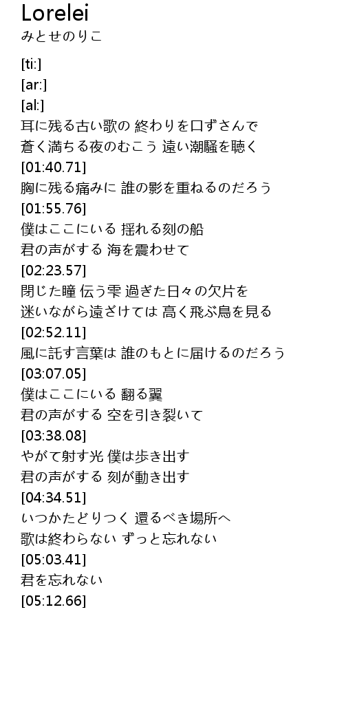 | [01:11.77] | 耳に残る古い歌の 終わりを口ずさんで |