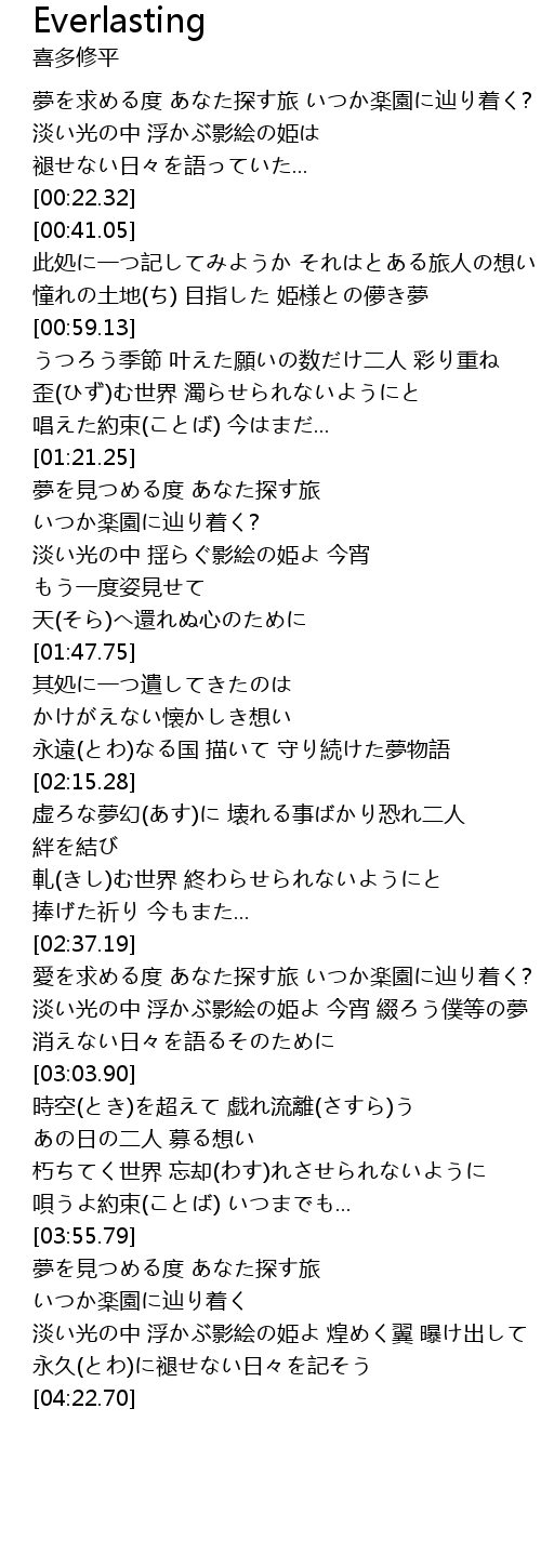 | [03:49.76] | 唄うよ約束(ことば) いつまでも... |