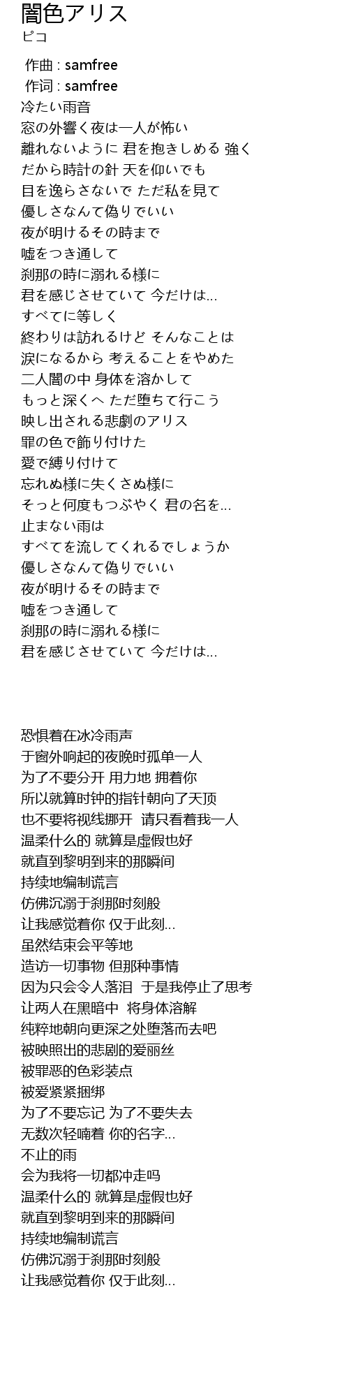 | [01:51.290] | もっと深くへ ただ堕ちて行こう |