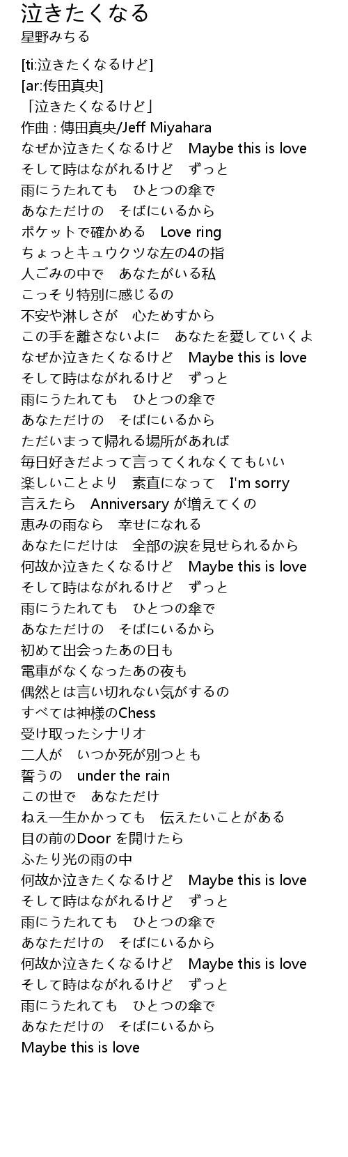 | [02:11.759] | 何故か泣きたくなるけど Maybe this is love |