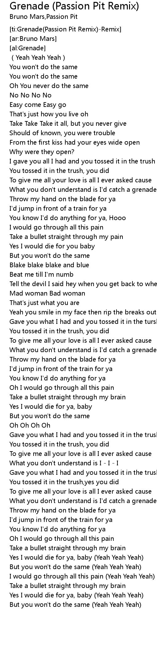| [ti:Grenade(Passion Pit Remix)-Remix] | |