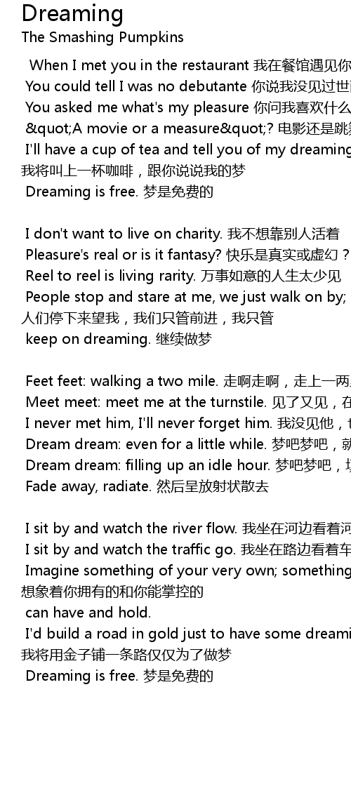 | Dreaming is free. mèng shì miǎn fèi de | |
