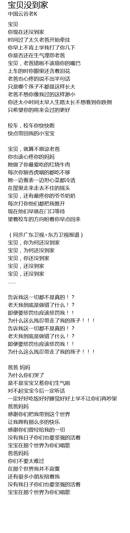 | bǎo bèi, nǐ wèi hé hái méi dào jiā | |