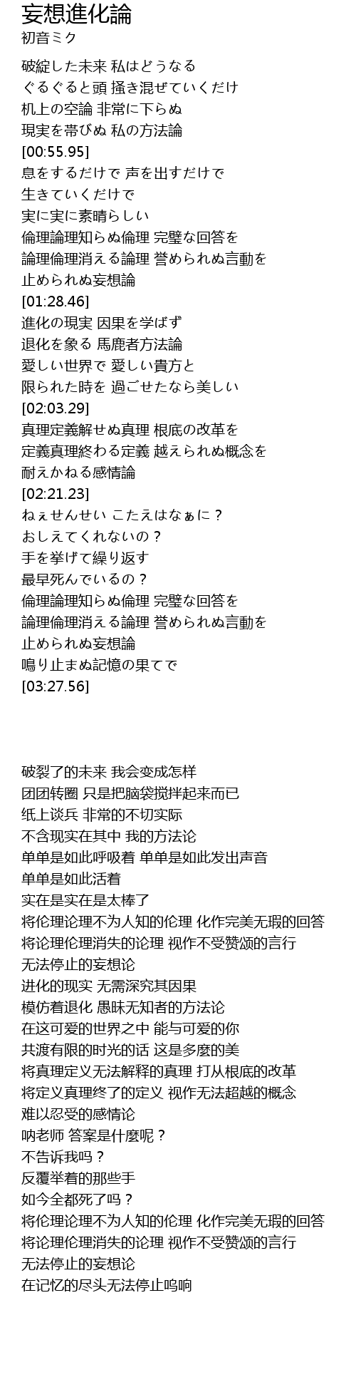 | [01:42.28] | 退化を象る 馬鹿者方法論 |
