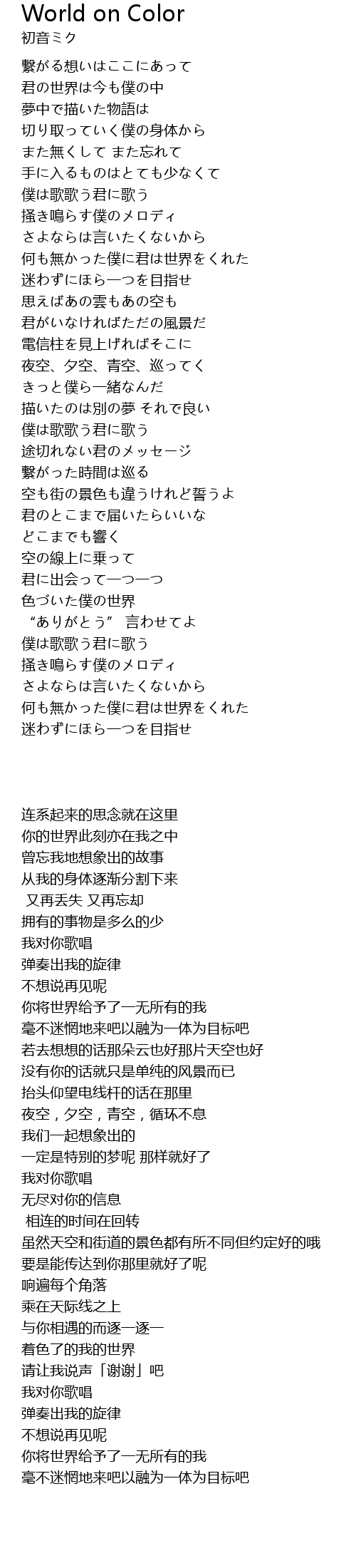 | [01:15.760] | 何も無かった僕に君は世界をくれた |