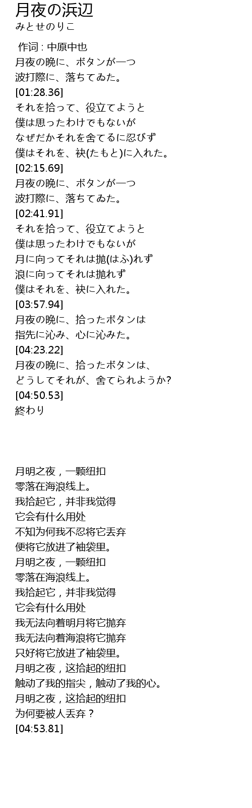 | [04:23.55] | 月夜の晩に、拾ったボタンは、 |