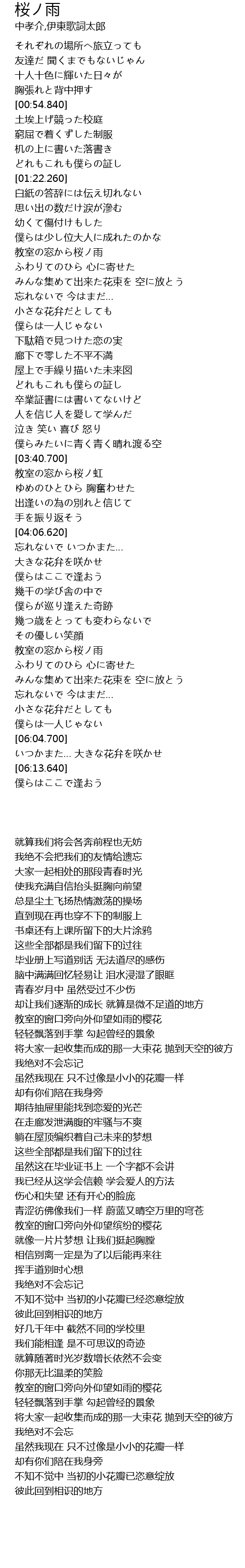 | [01:57.040] | 教室の窓から桜ノ雨 |