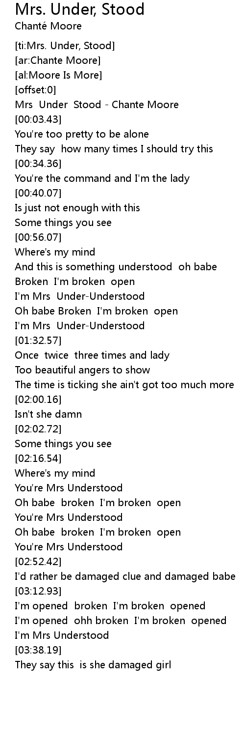 [ti:Mrs. Under, Stood] |