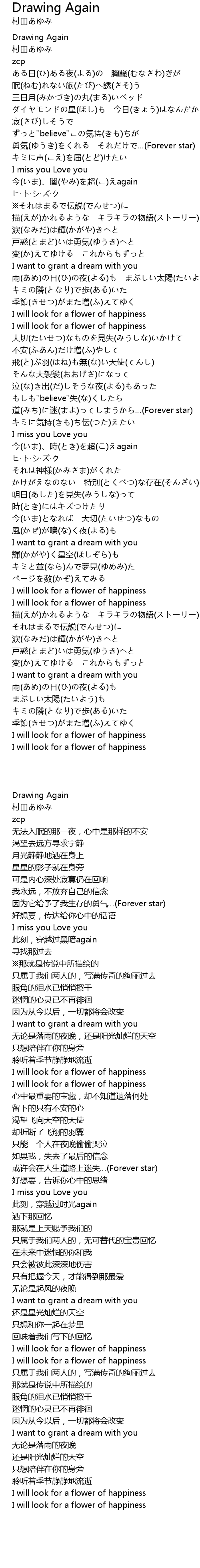 | [03:36.68] | I will look for a flower of happiness |