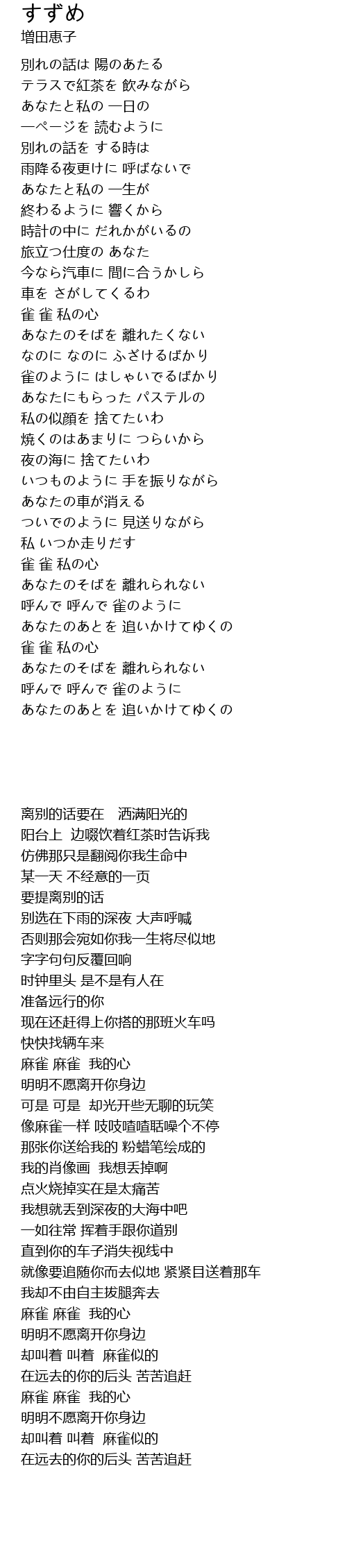 呼んで 呼んで 雀のように |
