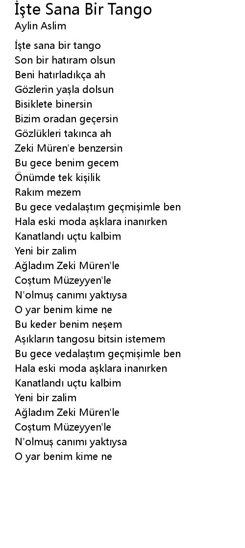 | Aşıkların tangosu bitsin istemem | |