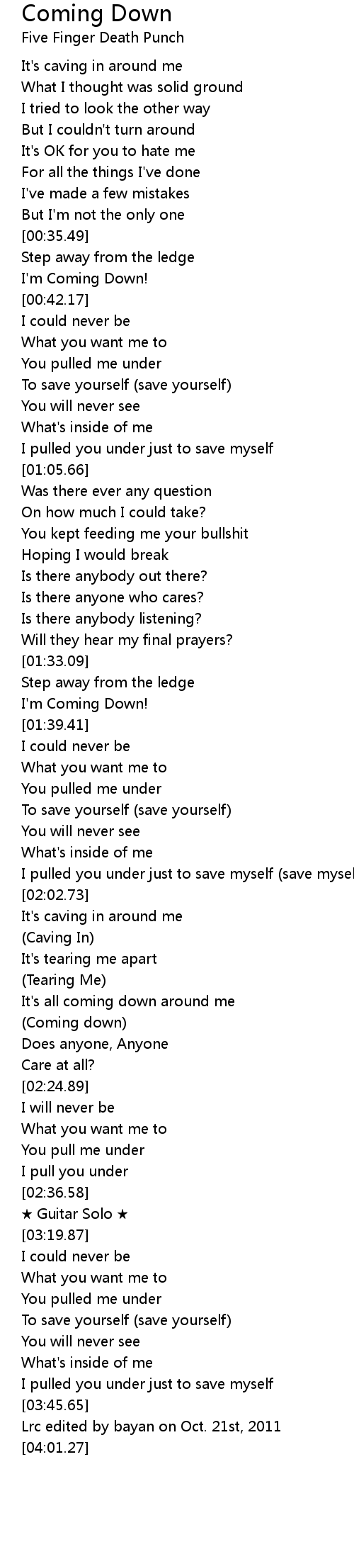 | [01:57.06] | I pulled you under just to save myself (save myself) |