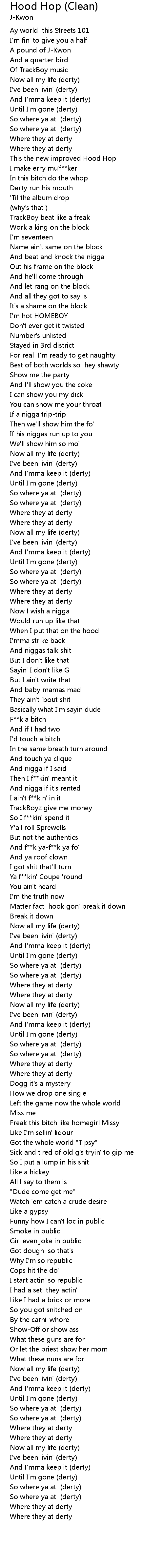Hood Hop (Clean) Lyrics