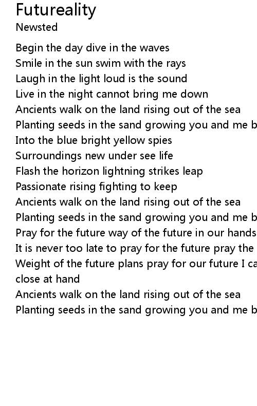 Weight of the future plans pray for our future I can see the future and it is close at hand |
