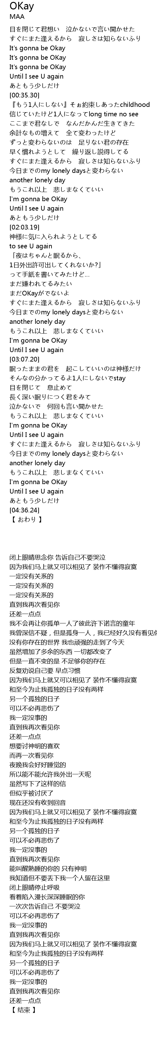 | [00:24.73] | It's gonna be OKay |