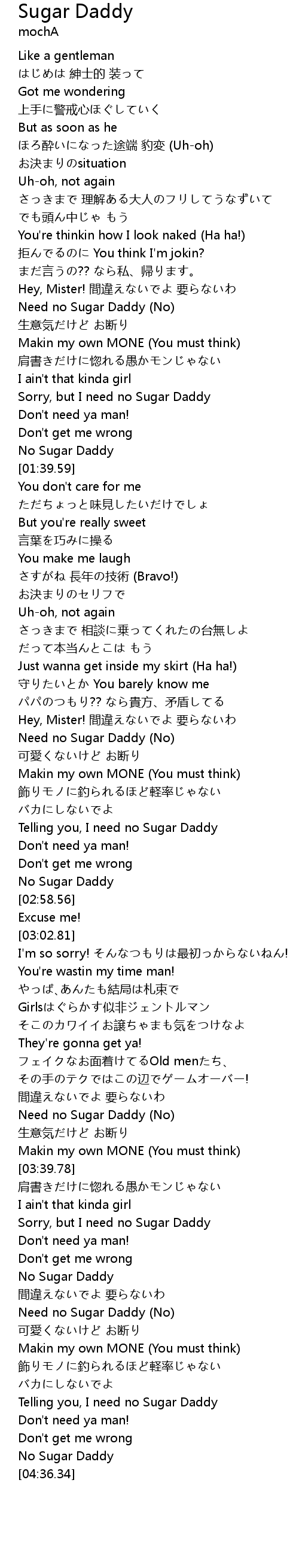 | [04:05.39] | Need no Sugar Daddy No |