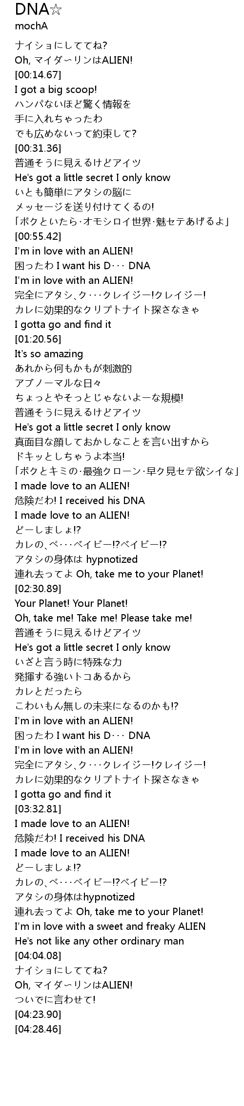 | [00:58.36] | 困ったわ I want his D・・・ DNA |