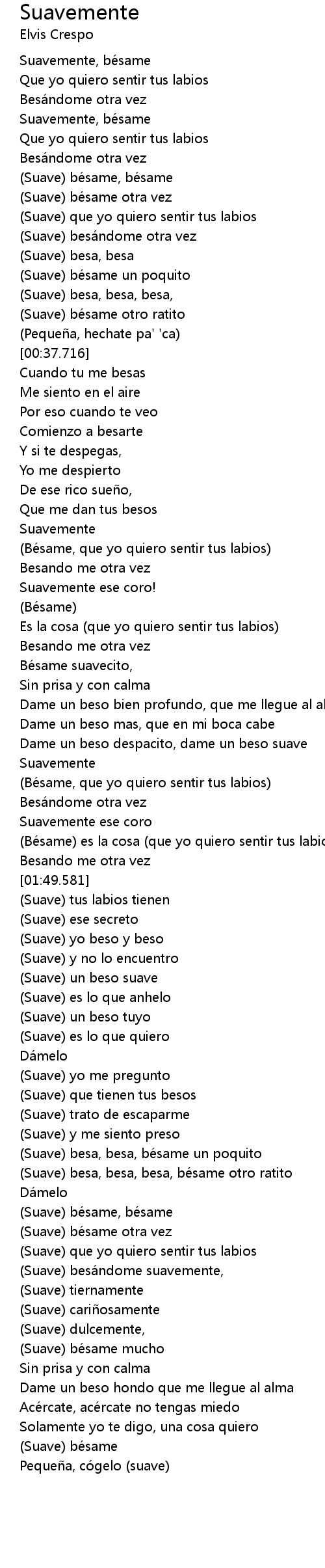 | [03:24.493] | Suave que yo quiero sentir tus labios |