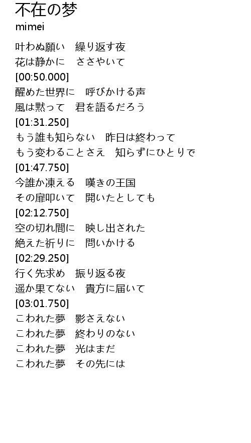 | [02:37.688] | 遥か果てない 貴方に届いて |