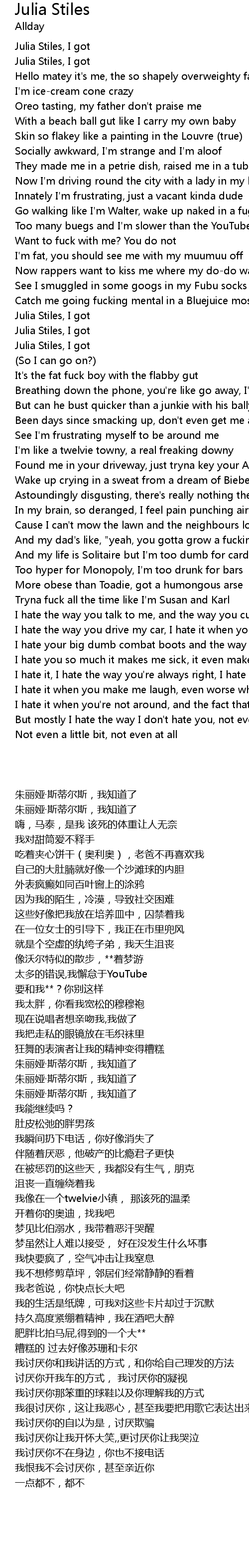 I hate you so much it makes me sick, it even makes me rhyme |