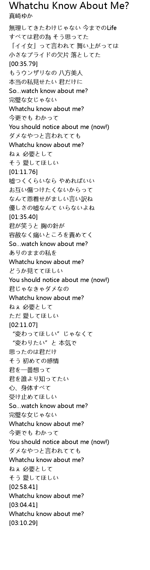 | [02:32.92] | So watch know about me? |