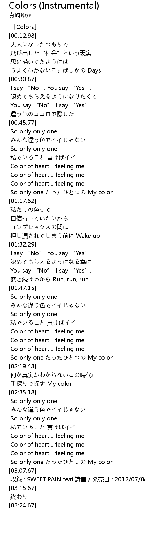| [03:10.67] | 収録∶SWEET PAIN feat.詩音/発売日∶2012/07/04 |