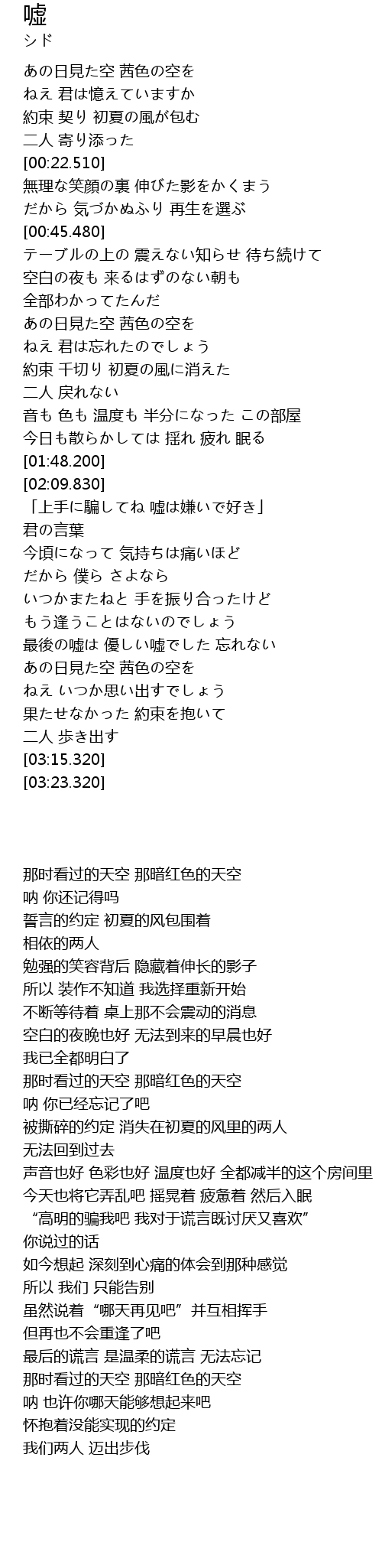 | [02:11.830] | 「上手に騙してね 嘘は嫌いで好き」 |