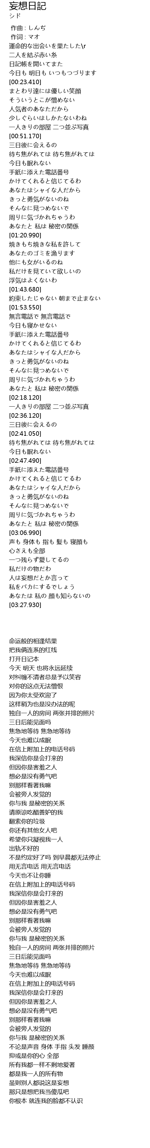 | [03:03.430] | あなたと 私は 秘密の関係 |