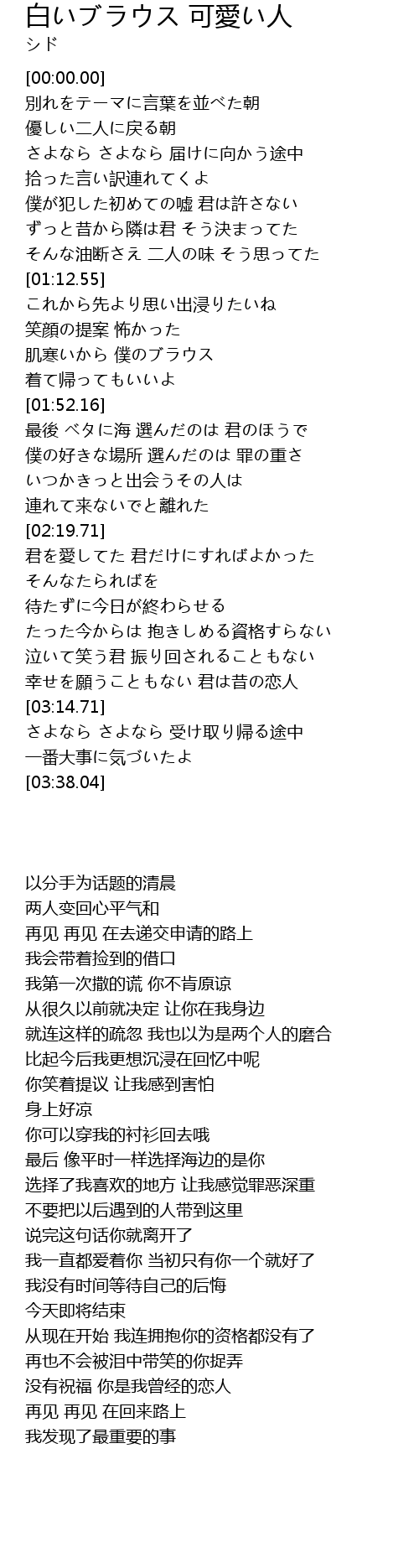 | [01:39.43] | 肌寒いから 僕のブラウス |
