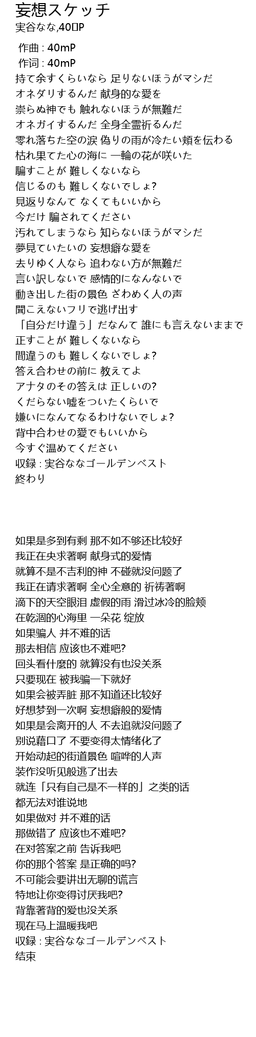 | [00:00.00] | 作曲 : 40mP |