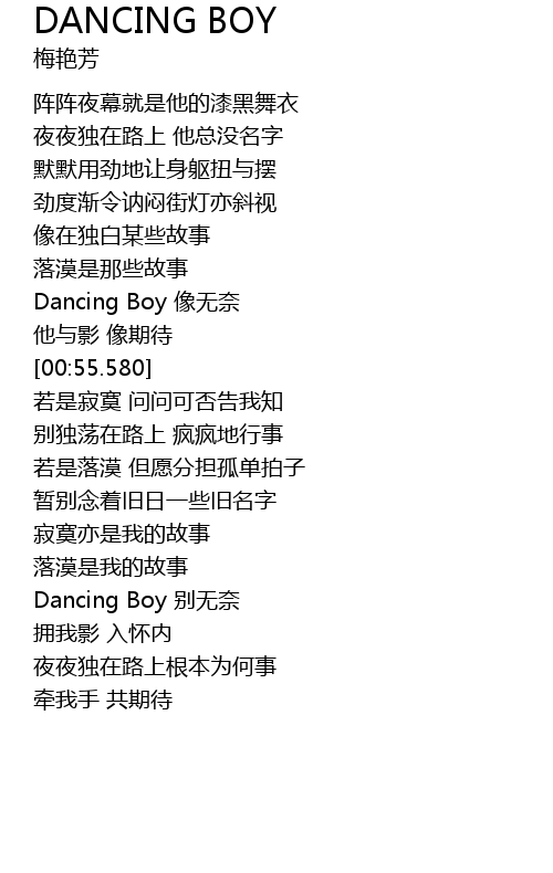 | [00:44.740] | Dancing Boy xiàng wú nài |
