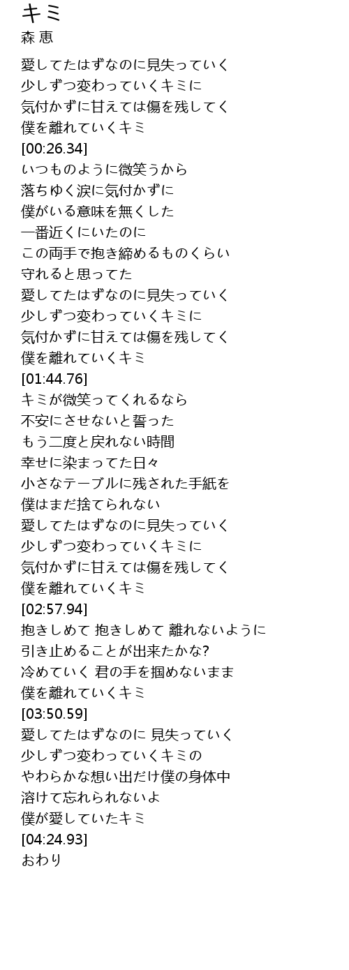 | [02:38.43] | 少しずつ変わっていくキミに |