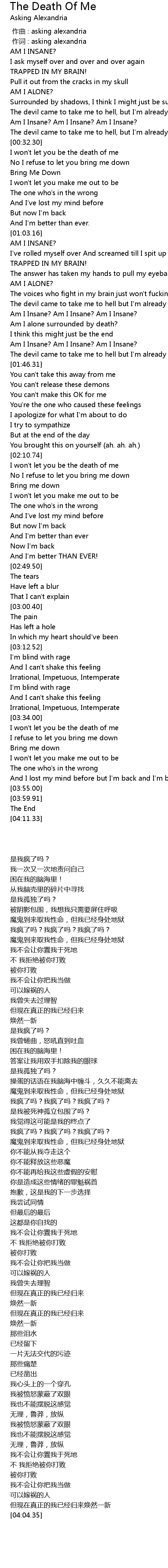 | [01:36.15] | Am I Insane? Am I Insane? Am I Insane? |