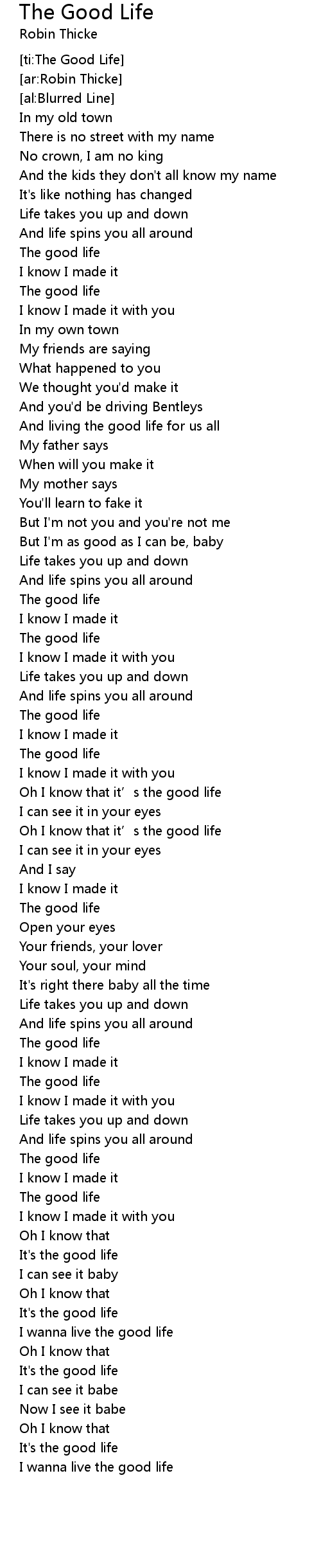 | [01:36.89] | The good life |