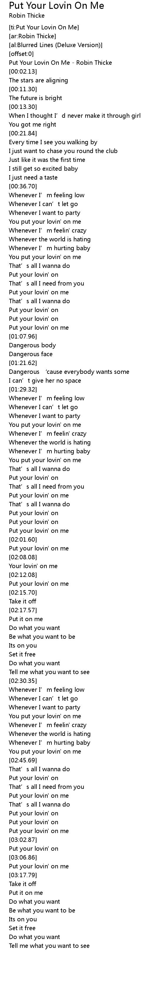 | [00:00.63] | Put Your Lovin On Me Robin Thicke |