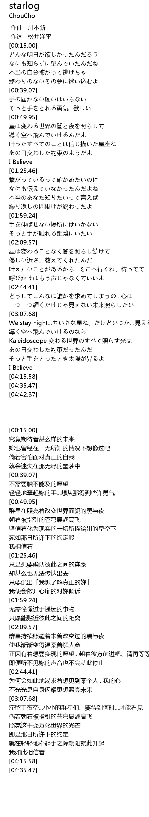 | [00:50.10] | 星は変わる世界の闇と夜を照らして |