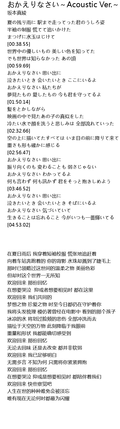 | [04:36.42] | 生きることは忘れること 今がいつも一番輝いてる |