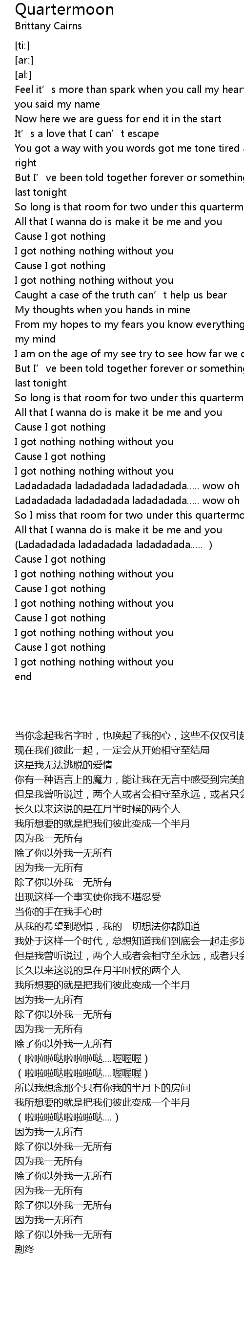 | [02:41.56] | So I miss that room for two under this quartermoon |
