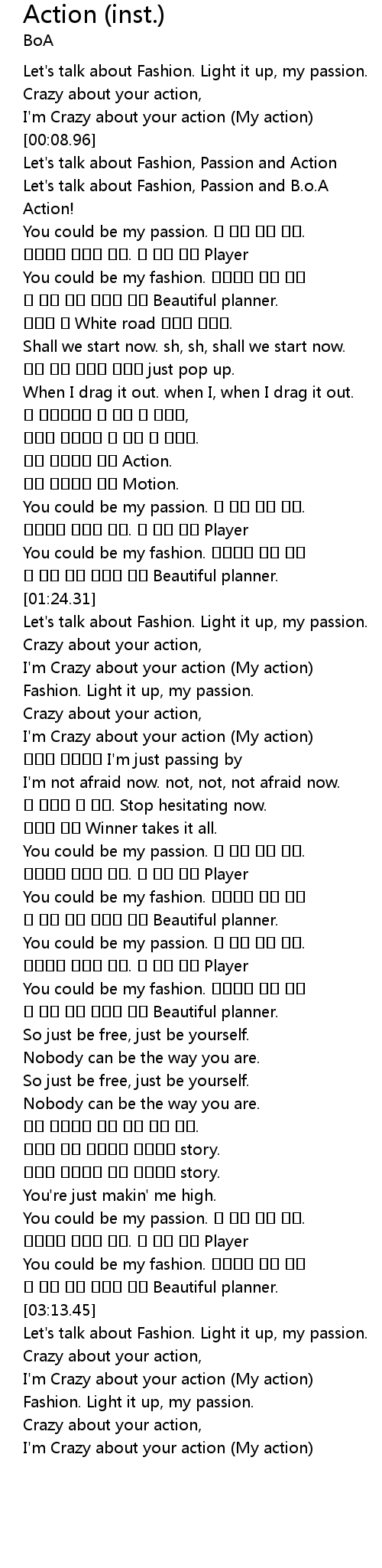 | [00:19.52] | Let's talk about Fashion, Passion and B.o.A |