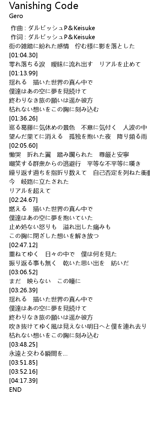 | [03:37.64] | 終わりなき旅の願いは遥か彼方 |