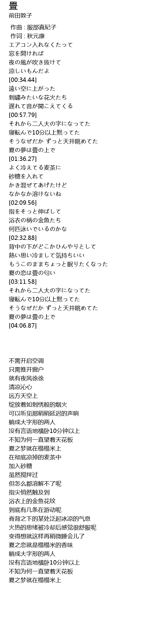 | [03:57.39] | 夏の夢は畳の上で |