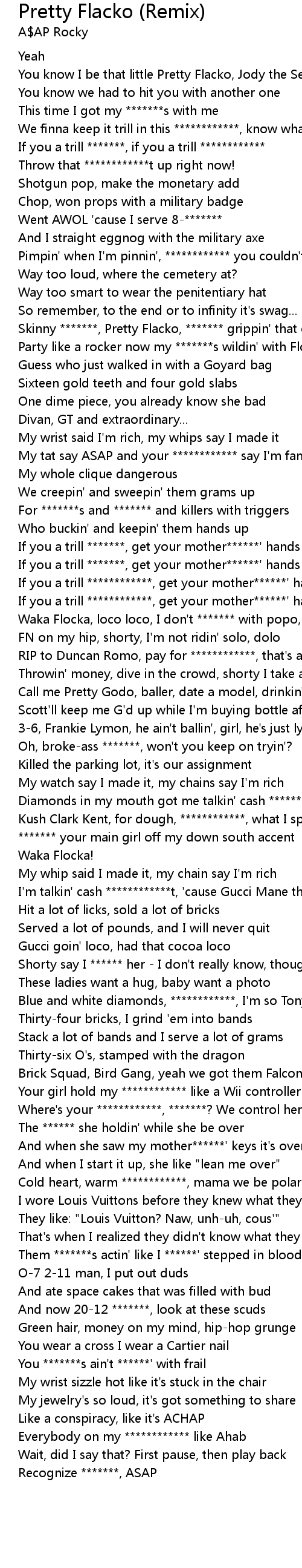 You know I be that little Pretty Flacko, Jody the Second, ******* |