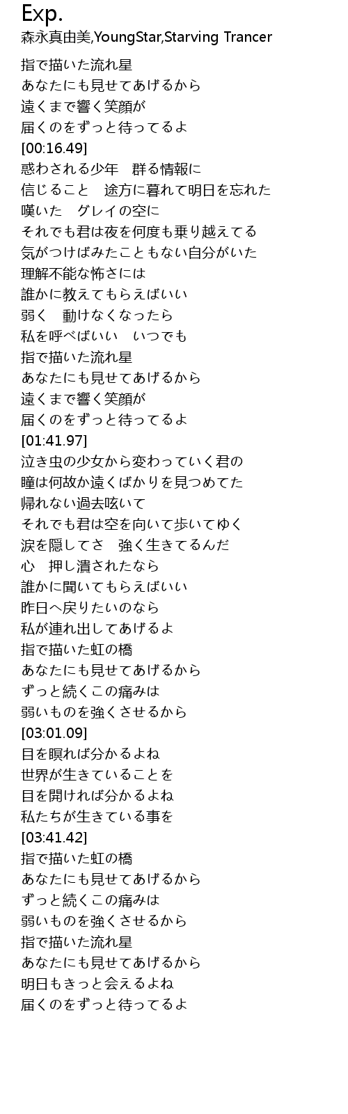 | [03:58.49] | 指で描いた流れ星 |