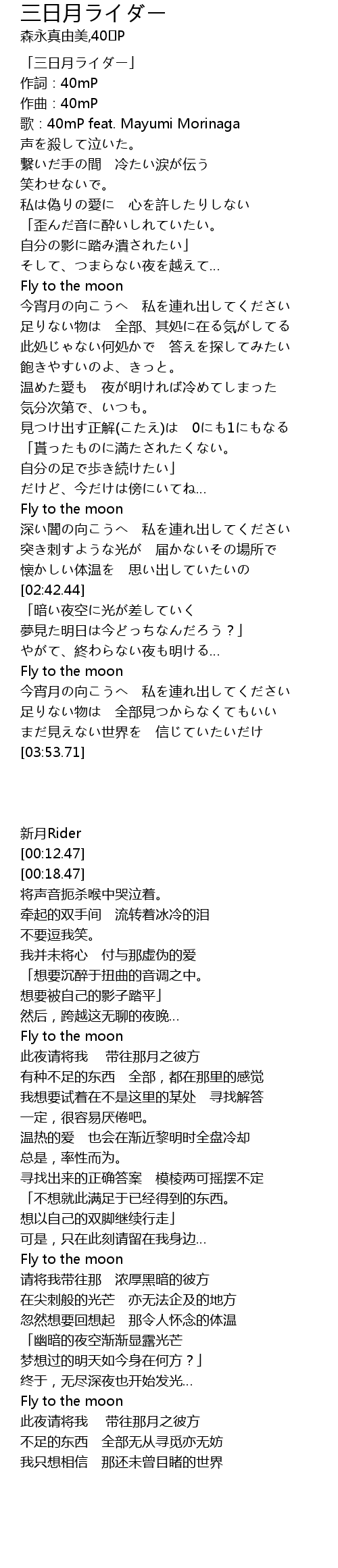 | [00:18.47] | 歌:40mP feat. Mayumi Morinaga |