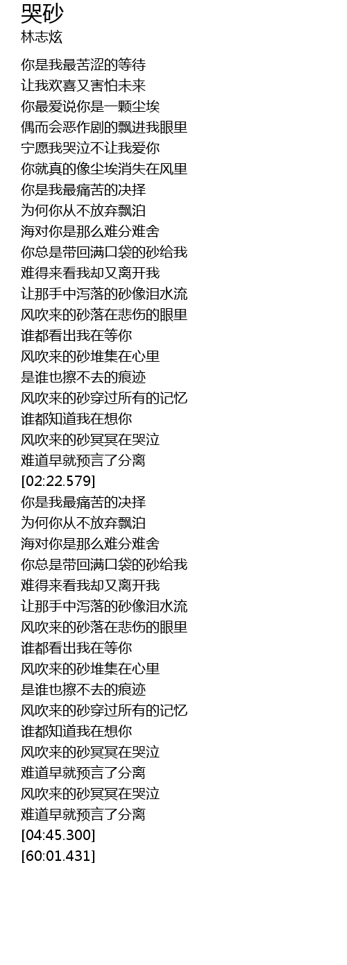 | [01:19.320] | 让那手中泻落的砂像泪水流 |