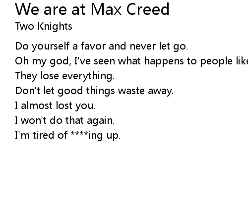 | Song | We are at Max Creed |