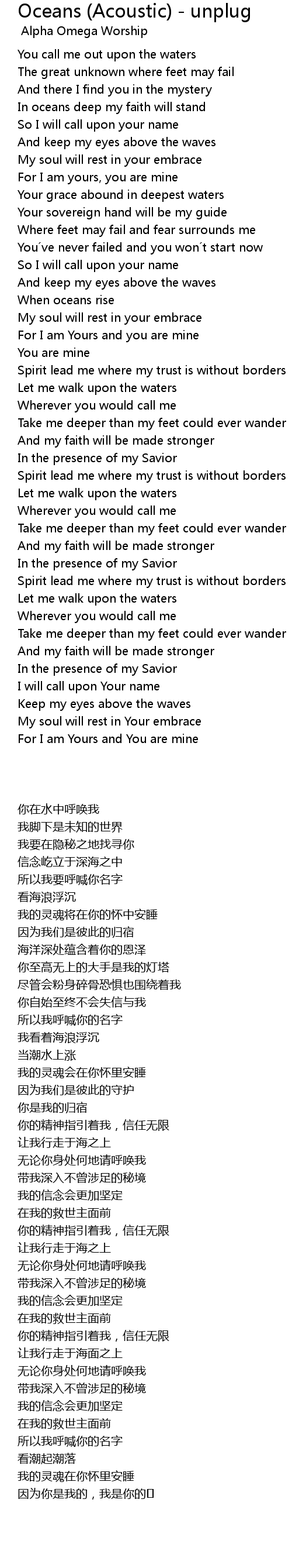 | Song | Oceans (Acoustic) - unplug |