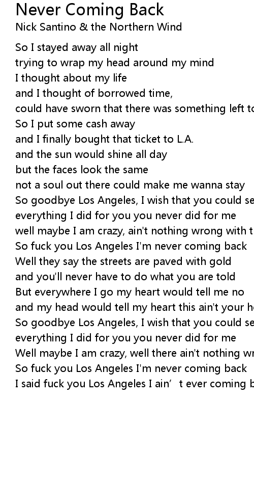 | So fuck you Los Angeles I' m never coming back | |