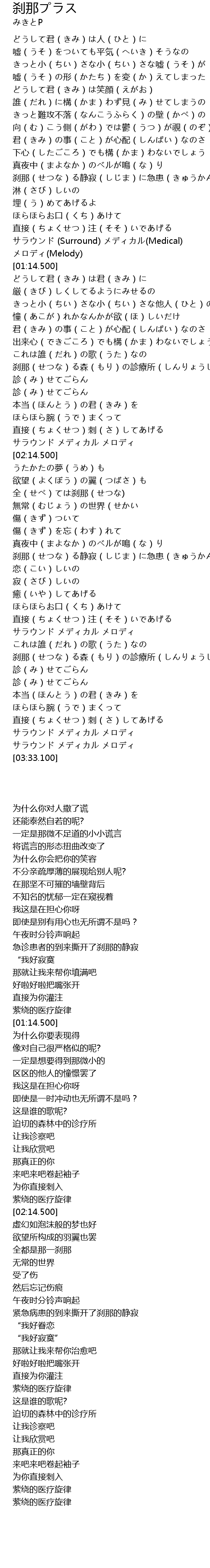 | [01:52.950] | 刹那(せつな)る森(もり)の診療所(しんりょうじょ |